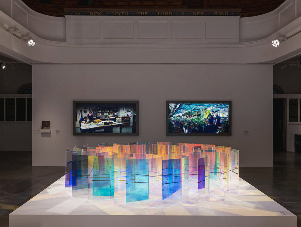Dutch/Light is a new installation drawing upon the ingenuity of early Anglo-Dutch glasshouse technology. Made of edge-lit Plexiglas and re-purposed timber from Chatham Dockyard the work is activated by sunlight to create a pavilion of geometric colour. Dutch/Light is commissioned to mark the 350th anniversary of the Dutch Raid on the River Medway, a naval incident which brought an end to the Anglo-Dutch wars.