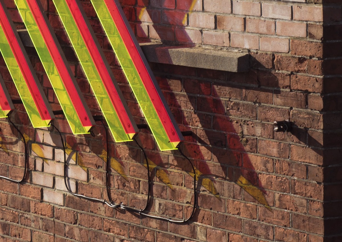 Brigitte is a film portrait of a new colourfield sculpture by Jyll Bradley. The sculpture, mounted on the south facing wall of Strange Cargo Arts in Cheriton, was filmed over the course of 24 hours using time-lapse photography and captures the changes brought about in the work through the movement of the sun as well as the surrounding world in which it resides. Brigitte represents a ‘day in the life’ of a work of art.